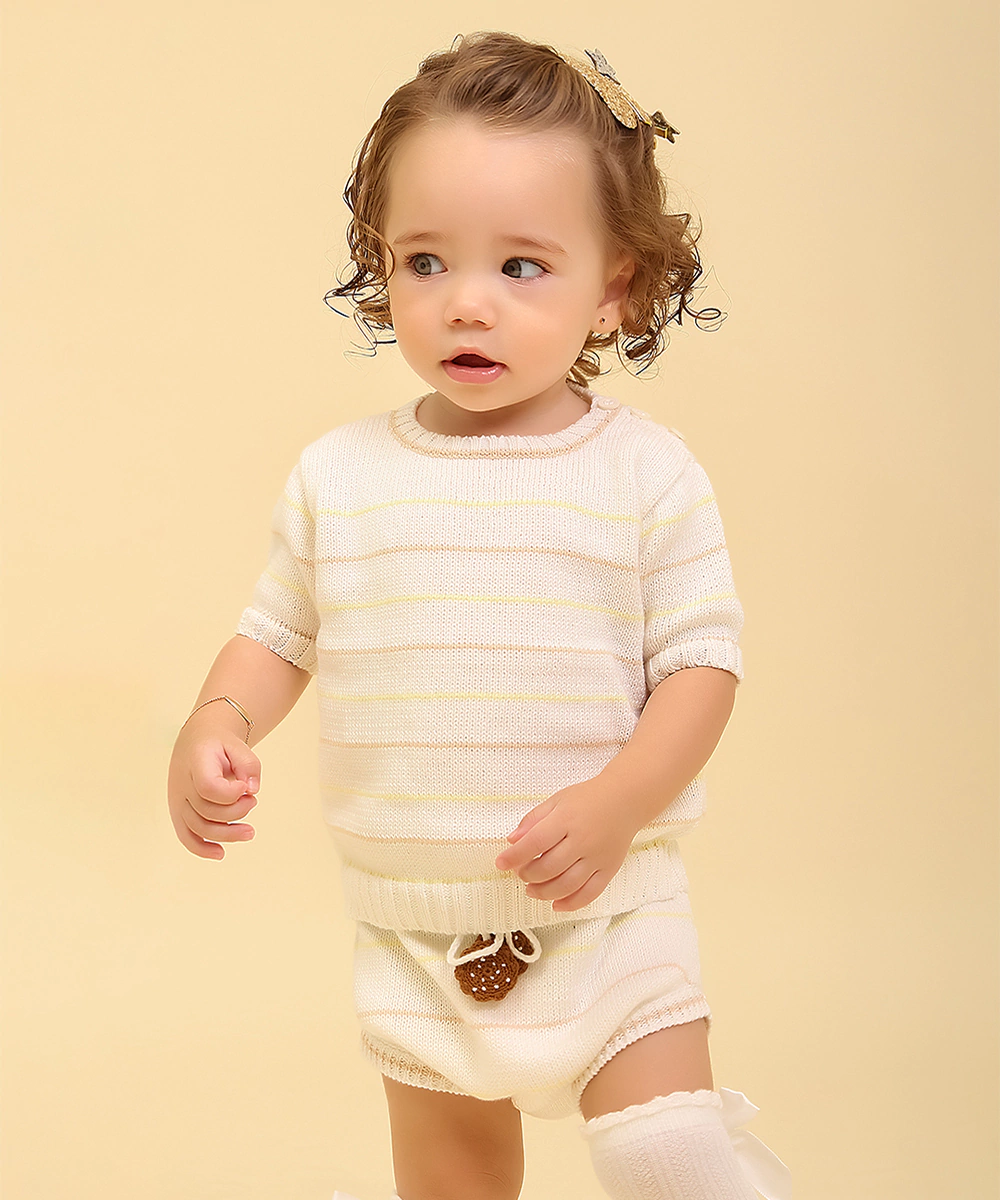 Conjunto Confeccionado em Tricot com Bordados Feito a Mão da Cookie Dreams. Mais que um tricot, um pedacinho de magia feito especialmente para o seu pequeno! Com inspiração vintage e o toque único da criação das peças de sonhos da Cookie, nasce a nossa linha de tricot! Especialmente desenvolvida em Lima e em Puno, nas margens do mágico lago Titicaca, nossas bordadeiras elaboram com suas mãos de fada cada detalhe em crochet que cria vida às ilustrações de sonhos da Cookie! Com uma técnica ancestral,100% manual, cada tricot é uma obra de arte. Feito 100% com fios de algodão peruano super macio, nossas peças de tricot são antialérgicas, ideal para a pele dos pequenos desde os primeiros dias de vida. Perfeito para qualquer estação do ano! Use com nossos bodies especiais e crie um look dos sonhos!