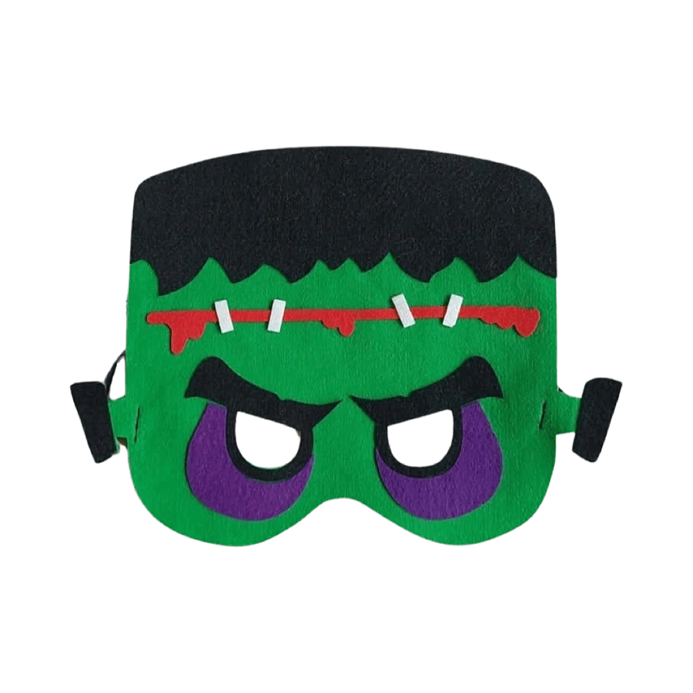 Uma máscara assustadora para compor o look dos pequenos Frankenstein! Confira nossa seleção de fantasias e crie seu look exclusivo! Máscara infantil feita em feltro.