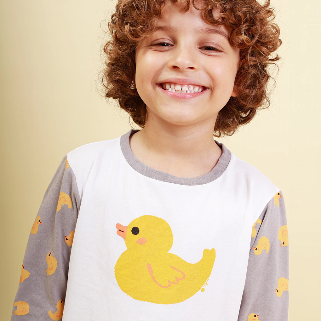 Pijama Infantil Pima Mr Cookie Pato. O pijama de algodão pima mais confortável do mundo e o preferido dos pequenos! Quem tem sabe, que basta colocar que eles não querem tirar mais, de tanto conforto que o nosso algodão pima proporciona! Além do conforto, as fibras longas do algodão pima dão um brilho e durabilidade especiais nos nossos pijamas, feitos com estampas lindas e encantadoras, a base de água, livre de tóxicos. Todas anti alérgicas, assim como o algodão pima. Um toque basta para sentir a maciez do algodão pima da Cookie Dreams Pijamas! O pijama vem com camiseta de pima de manga longa , com desenhos exclusivos da coleção da Cookie Dreams . A a calça é com punho, para os pequenos dormirem e não ficarem descobertos durante a noite! Os pequenos valorizam o conforto e se apaixonam pelos pijamas da Cookie! Prático de vestir, gostoso para sonhar, feito por quem entende de conforto e de pijamas, a Cookie Dreams, especialmente para os seus pequenos!